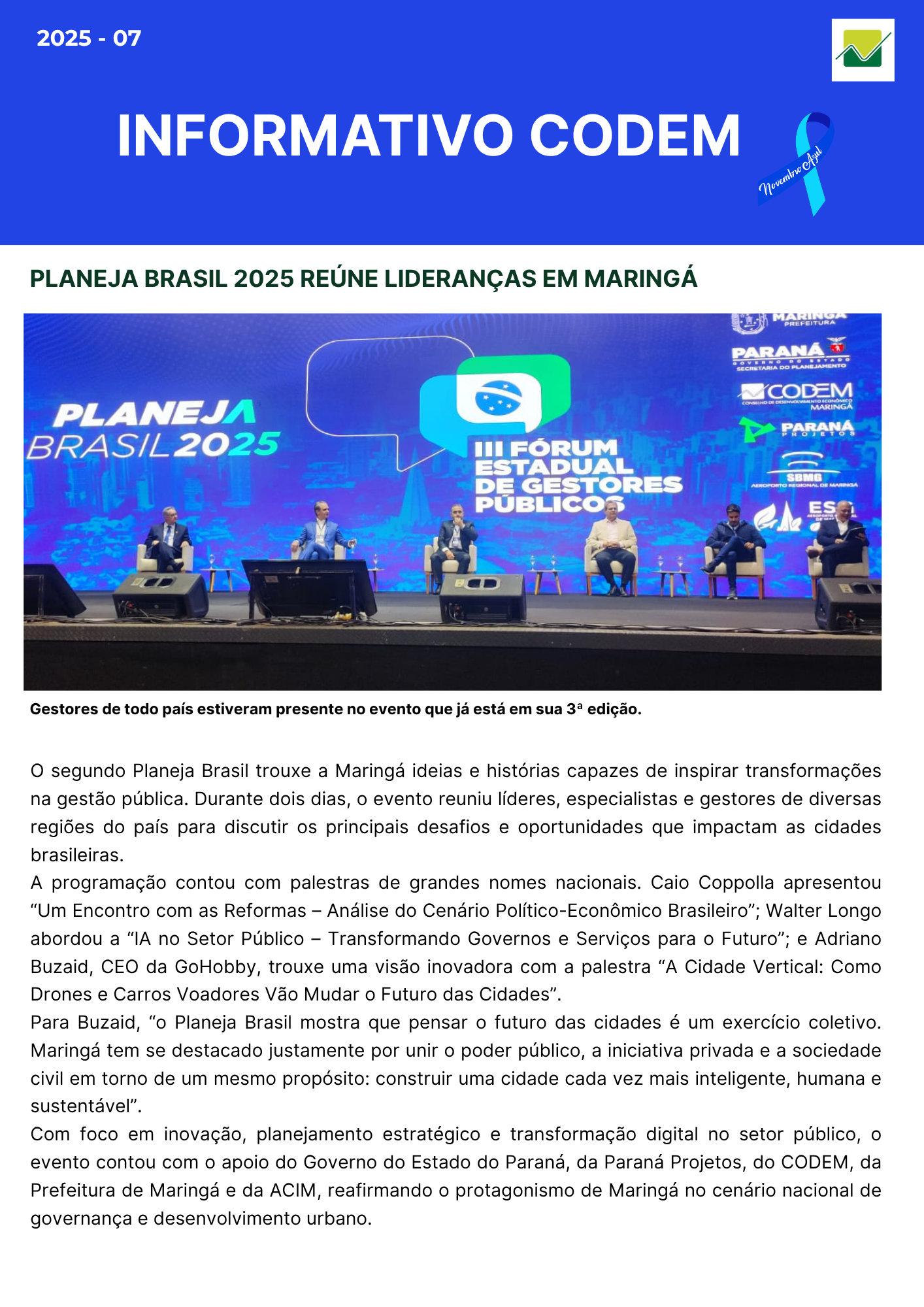 INFORMATIVO CODEM – Agosto/2025 (1ª quinzena)